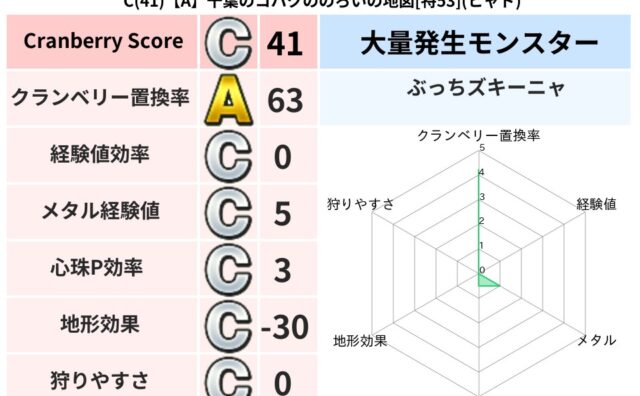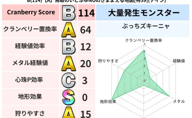 地図判定結果 C(83)【B】千葉のゆにのあやしい地図[特59](ヒャド) クランベリーボット判定結果の詳細クランベリースコア:83クランベリー置換率:63%大量発生モンスター:ぶっちズキーニャヒャド超耐性(0%)こころ道 完全一致モンスターキースドラゴン: 大魔導士(理力道Lv5)アイアンクック: 守り人(まもり... 2024/08/07 21:30 地図判定結果