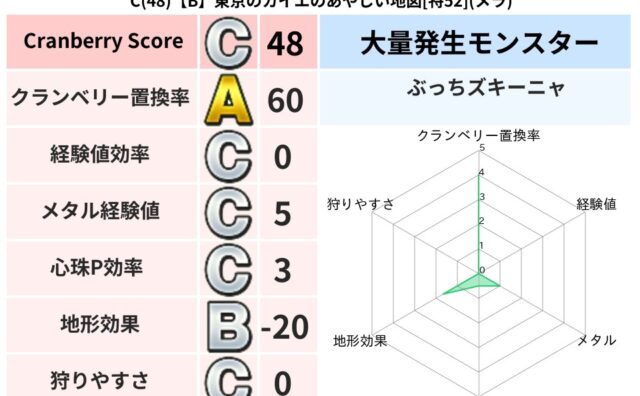 地図判定結果 C(48)【B】東京のカイエのあやしい地図[特52](メラ) クランベリーボット判定結果の詳細クランベリースコア:48クランベリー置換率:60%大量発生モンスター:ぶっちズキーニャメラ超耐性(17%)こころ道 完全一致モンスターどくろあらいゴッドハンド(守護道Lv5)キャットフライニンジャ(共通Lv1... 2024/08/11 04:52 地図判定結果