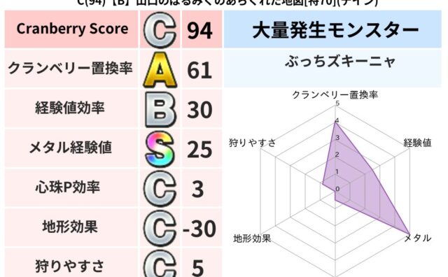 クランベリーボット判定結果の詳細クランベリースコア109クランベリー置換率61%大量発生モンスターぶっちズキーニャ超耐性デイン(46%)超耐性・弱耐性なしジバリアこころ道 完全一致モンスタースカルガルードラゴン(竜道Lv5)ナイトキャット守...