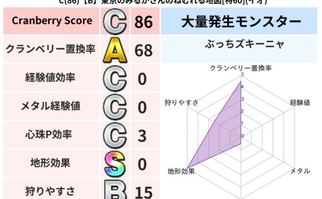 クランベリーボット判定結果の詳細クランベリースコア:124クランベリー置換率:62%大量発生モンスター:ぶっちズキーニャバギ超耐性(0%)系統狩り(40%)こころ道 完全一致モンスターおおさそりゴッドハンド(武道Lv5),ドラゴン(共通Lv...