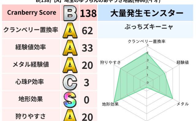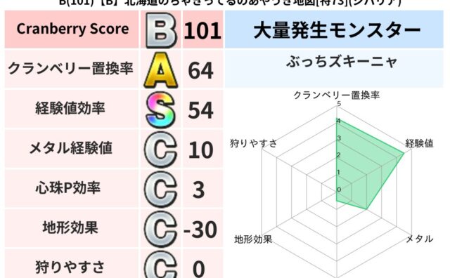 地図判定結果 B(135)【A】神奈川のPののろいの地図[特75](バギ) クランベリーボット判定結果の詳細クランベリースコア:135クランベリー置換率:52%大量発生モンスター:ぶっちズキーニャバギ超耐性(0%)超耐性・弱耐性なし:ドルマこころ道 完全一致モンスターベロニャーゴ: 大魔導士(理力道Lv5)リカント... 2025/07/21 22:35 地図判定結果