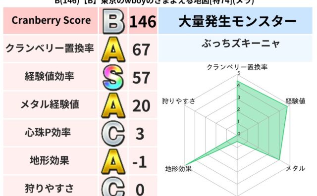 地図判定結果 B(131)【A】大阪の!ばねのあらくれた地図[特71](ジバリア) クランベリーボット判定結果の詳細クランベリースコア:131クランベリー置換率:36%大量発生モンスター:ズッキーニャ,ぶっちズキーニャジバリア超耐性(0%)こころ道 完全一致モンスターどれいへいし: ドラゴン(人道Lv5)ベビーサラマンダ:... 2025/05/10 10:24 地図判定結果