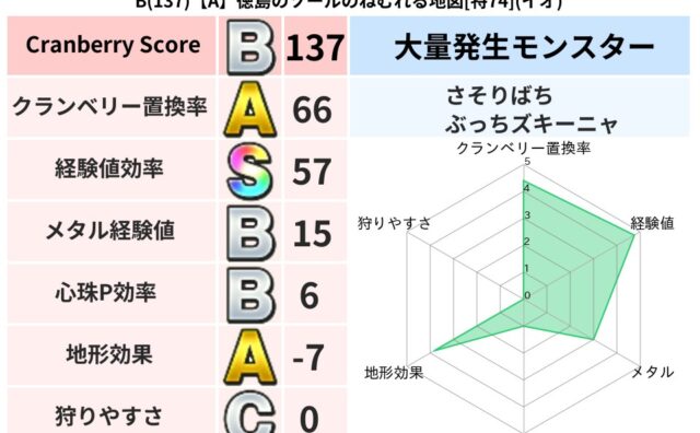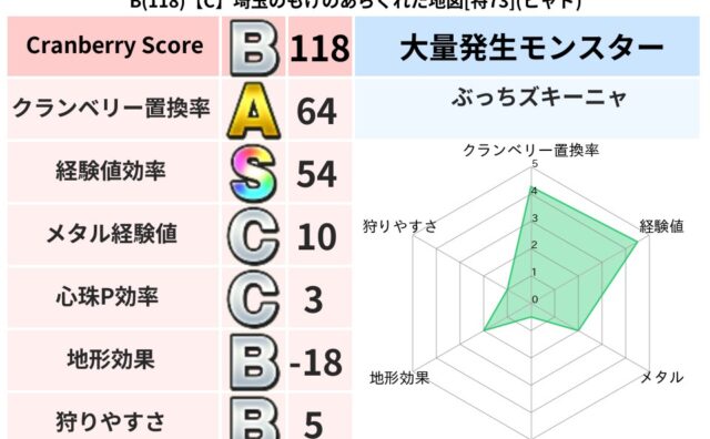 地図判定結果 B(141)【B】愛知のアルスのあやしい地図[特73](イオ) クランベリーボット判定結果の詳細クランベリースコア:141クランベリー置換率:44%大量発生モンスター:ぶっちズキーニャイオ超耐性(0%)こころ道 完全一致モンスターキメラ: 大魔導士(共通Lv1)どくイモムシ: ニンジャ(波道Lv5)キラ... 2025/05/02 13:58 地図判定結果