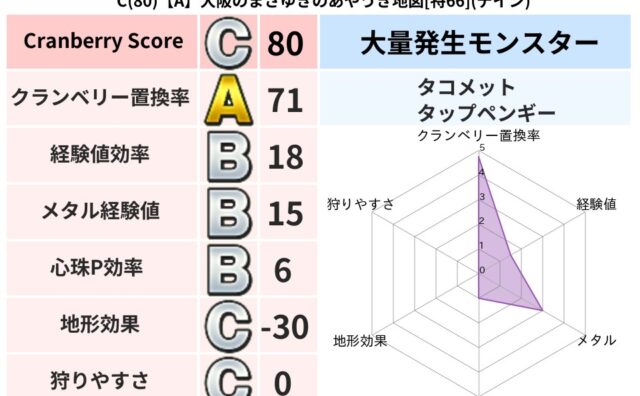 クランベリーボット判定結果の詳細クランベリースコア87クランベリー置換率76%大量発生モンスタータップペンギー超耐性イオ(91%)超耐性・弱耐性なしバギデインドルマこころ道 完全一致モンスターフレイム守り人(ささえ道Lv5)おおさそりゴッド...