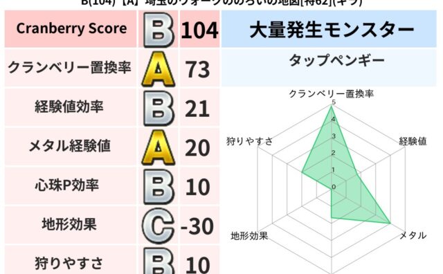 クランベリーボット判定結果の詳細クランベリースコア:81クランベリー置換率:67%大量発生モンスター:じごくのもんばん,タップペンギーイオ超耐性(0%)こころ道 完全一致モンスターヘルボックル: 魔剣士(魔道Lv30)キャタピラー: ニンジ...