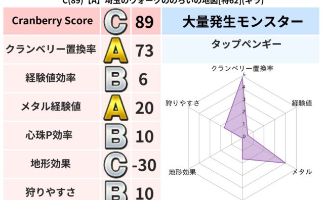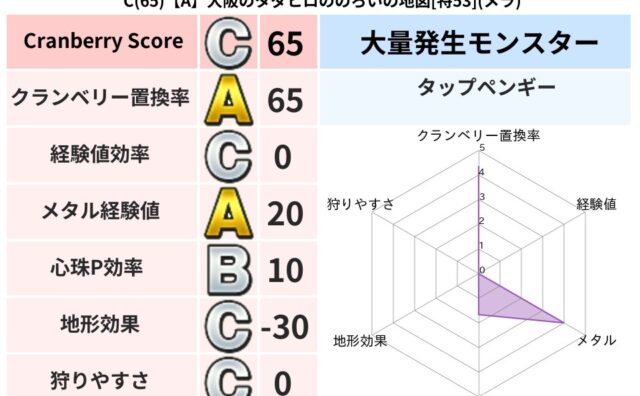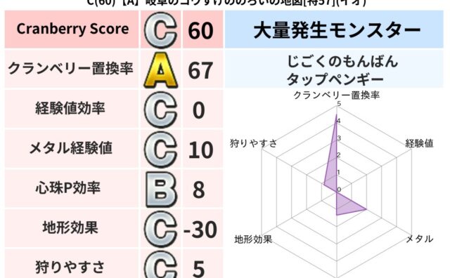 クランベリーボット判定結果の詳細クランベリースコア:81クランベリー置換率:67%大量発生モンスター:じごくのもんばん,タップペンギーイオ超耐性(0%)こころ道 完全一致モンスターヘルボックル: 魔剣士(魔道Lv30)キャタピラー: ニンジ...