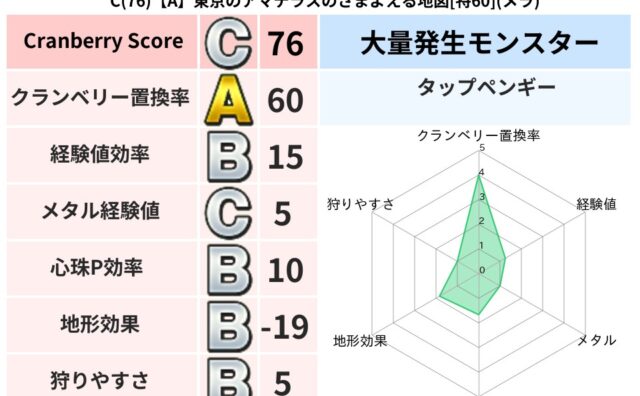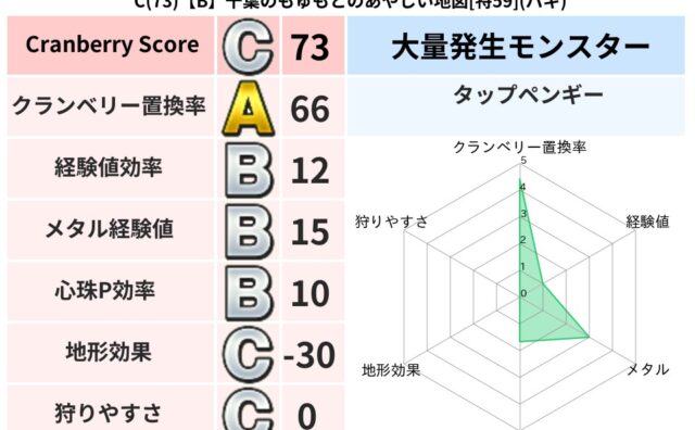 クランベリーボット判定結果の詳細クランベリースコア140クランベリー置換率72%大量発生モンスタータップペンギー,クリスタルハンド超耐性ギラ(0%)こころ道 完全一致モンスターどくどくゾンビ魔剣士(共通Lv1)デビルアーマー大神官(舞道Lv...