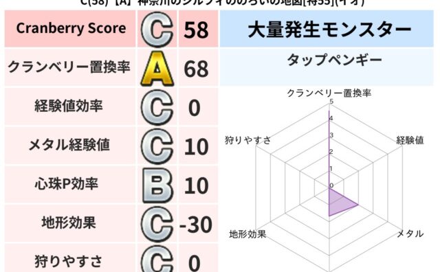 クランベリーボット判定結果の詳細クランベリースコア:128クランベリー置換率:63%大量発生モンスター:タップペンギーギラ超耐性(51%)こころ道 完全一致モンスターフレイム守り人(ささえ道Lv5)リカントマムルドラゴン(竜道Lv5)どろに...