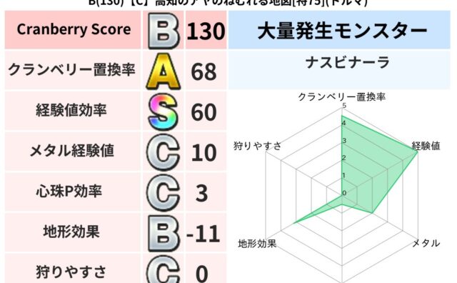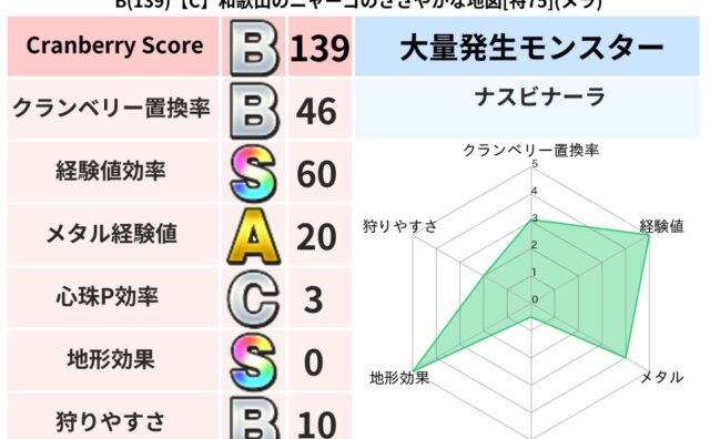 地図判定結果 B(130)【C】高知のアヤのねむれる地図[特75](ドルマ) クランベリーボット判定結果の詳細クランベリースコア:130クランベリー置換率:68%大量発生モンスター:ナスビナーラドルマ超耐性(9%)こころ道 完全一致モンスタースカルガルードラゴン(竜道Lv5)ジェリーマン魔剣士(魔道Lv5)びっくりサ... 2025/09/01 23:08 地図判定結果
