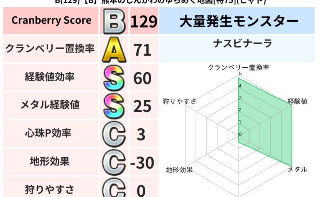 地図判定結果 B(129)【B】熊本のしんかわのゆらめく地図[特75](ヒャド) クランベリーボット判定結果の詳細クランベリースコア:129クランベリー置換率:71%大量発生モンスター:ナスビナーラヒャド超耐性(77%)こころ道 完全一致モンスターデビルアーマー大神官(舞道Lv5)おおさそりゴッドハンド(武道Lv5),ド... 2025/09/03 18:09 地図判定結果