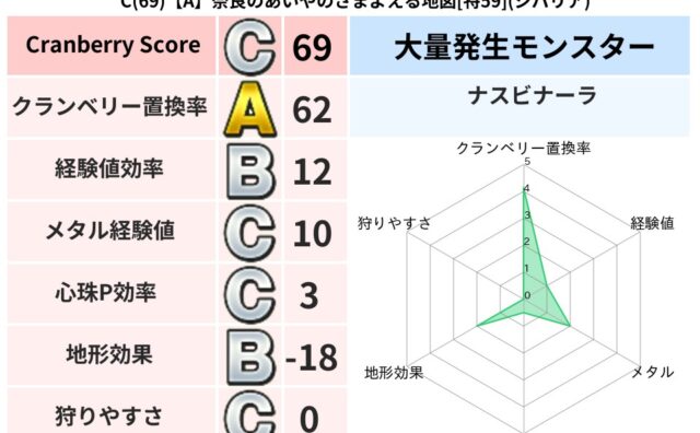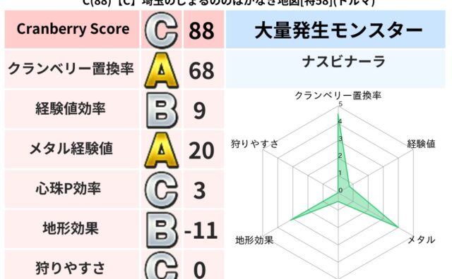 地図判定結果 C(89)【A】奈良のあいやのさまよえる地図[特59](ジバリア) クランベリーボット判定結果の詳細クランベリースコア:89クランベリー置換率:62%大量発生モンスター:ナスビナーラジバリア超耐性(0%)こころ道 完全一致モンスターストーンマン: ゴッドハンド(守護道Lv5)リカントマムル: ドラゴン(竜道... 2024/05/05 20:40 地図判定結果
