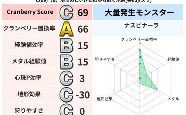 地図判定結果 C(69)【B】神奈川のシコリーノのあやうき地図[特48](ジバリア) クランベリーボット判定結果の詳細クランベリースコア:69クランベリー置換率:66%大量発生モンスター:ナスビナーラジバリア超耐性(0%)こころ道 完全一致モンスタードロヌーバ: ニンジャ(波道Lv5)フレイム: 守り人(ささえ道Lv5)イエ... 2024/04/26 22:16 地図判定結果
