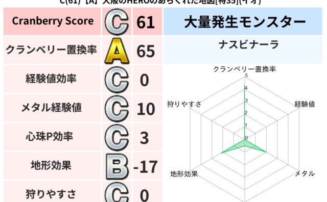 地図判定結果 C(61)【A】大阪のHEROのあらくれた地図[特35](イオ) クランベリーボット判定結果の詳細クランベリースコア:61クランベリー置換率:65%大量発生モンスター:ナスビナーライオ超耐性(14%)こころ道 完全一致モンスターヘルボックル魔剣士(魔道Lv30)ギズモ天地雷鳴士(共通Lv1)キースドラゴン... 2024/01/23 10:46 地図判定結果