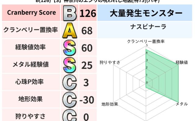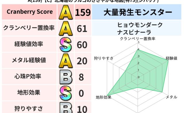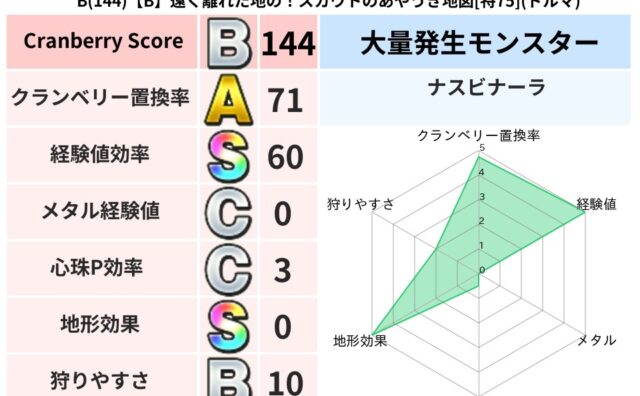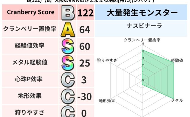 地図判定結果 B(144)【B】遠く離れた地の!スカウトのあやうき地図[特75](ドルマ) クランベリーボット判定結果の詳細クランベリースコア:144クランベリー置換率:71%大量発生モンスター:ナスビナーラドルマ超耐性(0%)こころ道 完全一致モンスターねこまどうニンジャ(風道Lv5)デビルアーマー大神官(舞道Lv5)しりょうの... 2025/04/23 22:20 地図判定結果