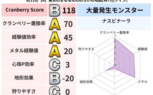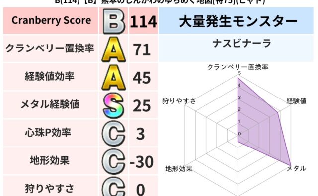 クランベリーボット判定結果の詳細クランベリースコア114クランベリー置換率71%大量発生モンスターナスビナーラ超耐性ヒャド(77%)こころ道 完全一致モンスターデビルアーマー大神官(舞道Lv5)おおさそりゴッドハンド(武道Lv5)ドラゴン(...
