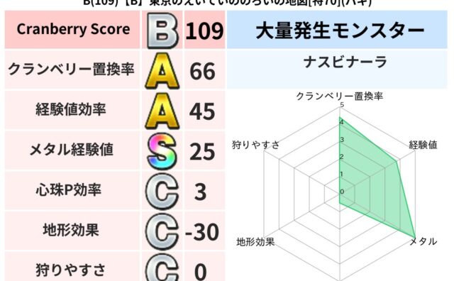 地図判定結果 B(109)【B】東京のえいていののろいの地図[特70](バギ) クランベリーボット判定結果の詳細クランベリースコア:109クランベリー置換率:66%大量発生モンスター:ナスビナーラバギ超耐性(74%)こころ道 完全一致モンスターデビルアーマー大神官(舞道Lv5)ひとくいばこ魔剣士(刃道Lv10)イエティ... 2025/02/21 18:06 地図判定結果
