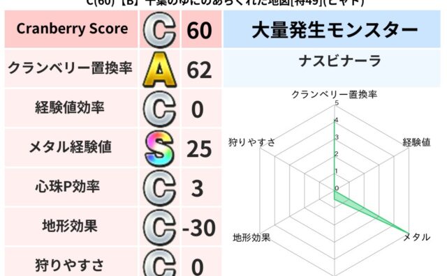 地図判定結果 B(103)【C】長野のdragonのあやしい地図[特57](ドルマ) クランベリーボット判定結果の詳細クランベリースコア:103クランベリー置換率:65%大量発生モンスター:ナスビナーラドルマ超耐性(0%)こころ道 完全一致モンスターキメラ: 大魔導士(共通Lv1)さまようよろい: ゴッドハンド(守護道Lv5... 2024/10/07 22:47 地図判定結果