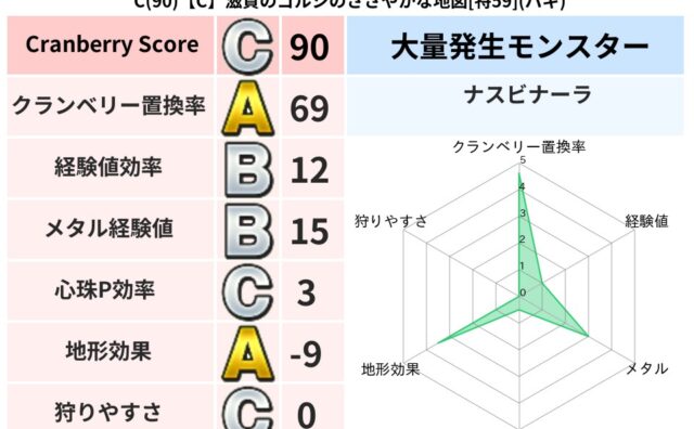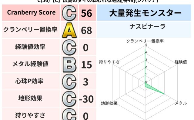 地図判定結果 C(90)【C】滋賀のゴルシのささやかな地図[特59](バギ) クランベリーボット判定結果の詳細クランベリースコア:90クランベリー置換率:69%大量発生モンスター:ナスビナーラバギ超耐性(8%)こころ道 完全一致モンスターどくどくゾンビ魔剣士(共通Lv1)キースドラゴン大魔導士(理力道Lv5)てっこう... 2024/08/19 13:44 地図判定結果
