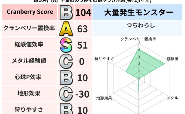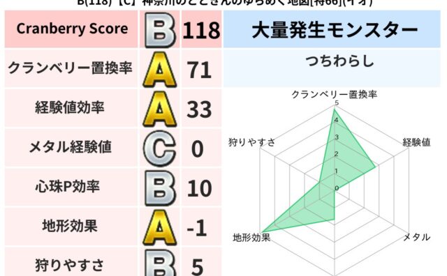 クランベリーボット判定結果の詳細クランベリースコア114クランベリー置換率65%大量発生モンスターバアルゼブブ,つちわらし超耐性ギラ(61%)こころ道 完全一致モンスターくさった死体ゴッドハンド(守護道Lv5)大魔道士(魔力道Lv5)ばくだ...
