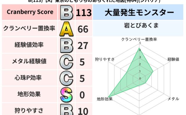クランベリーボット判定結果の詳細クランベリースコア63クランベリー置換率70%大量発生モンスターズッキーニャ,岩とびあくま超耐性ドルマ(54%)こころ道 完全一致モンスタースカルガルードラゴン(竜道Lv5)ストーンマンゴッドハンド(守護道L...