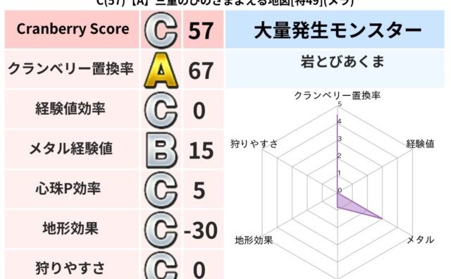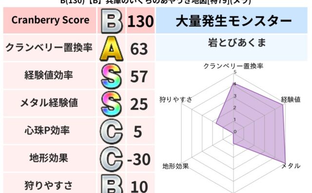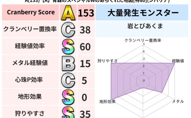 クランベリーボット判定結果の詳細クランベリースコア98クランベリー置換率66%大量発生モンスター岩とびあくま,げんじゅつし超耐性ジバリア(49%)こころ道 完全一致モンスターデビルアーマー大神官(舞道Lv5)キースドラゴン大魔道士(理力道L...