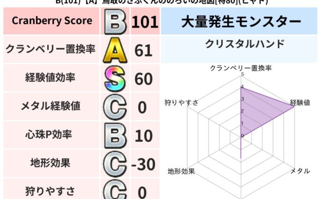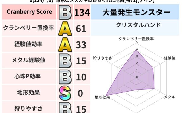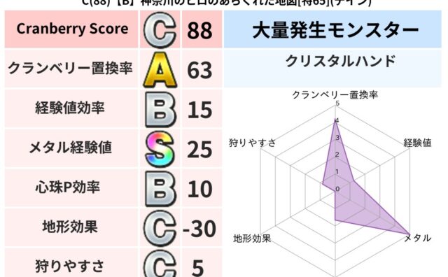 クランベリーボット判定結果の詳細クランベリースコア85クランベリー置換率60%大量発生モンスタークリスタルハンド超耐性ヒャド(50%)こころ道 完全一致モンスターさまようよろいゴッドハンド(守護道Lv5)ナイトキャット守り人(まもり道Lv3...