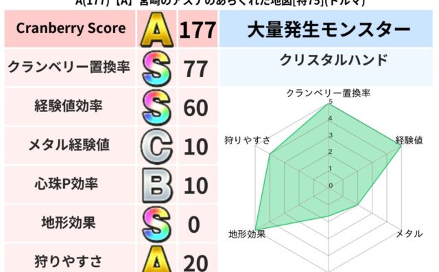 クランベリーボット判定結果の詳細クランベリースコア79クランベリー置換率63%大量発生モンスタークリスタルハンド超耐性ヒャド(83%)系統狩りゾンビ系41%こころ道 完全一致モンスターねこまどうニンジャ(風道Lv5)キースドラゴン大魔道士(...