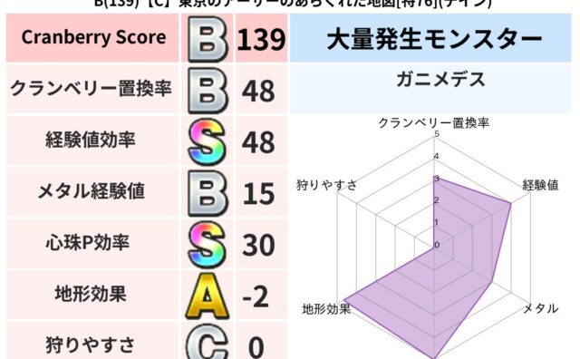クランベリーボット判定結果の詳細クランベリースコア170クランベリー置換率50%大量発生モンスターガニメデス超耐性デイン(0%)こころ道 完全一致モンスターナイトキャット守り人(まもり道Lv30)くさった死体ゴッドハンド(守護道Lv5)大魔...