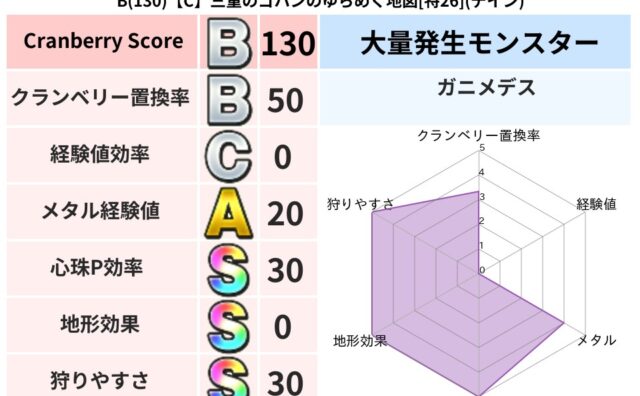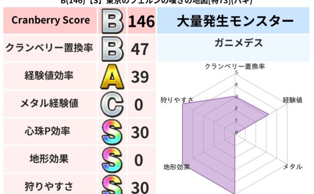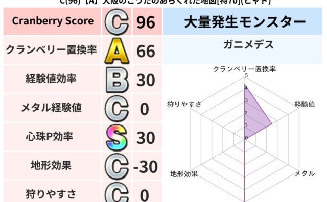 クランベリーボット判定結果の詳細クランベリースコア188クランベリー置換率52%大量発生モンスターガニメデス超耐性デイン(0%)こころ道 完全一致モンスターねこまどうニンジャ(風道Lv5)くさった死体ゴッドハンド(守護道Lv5)大魔道士(魔...