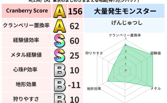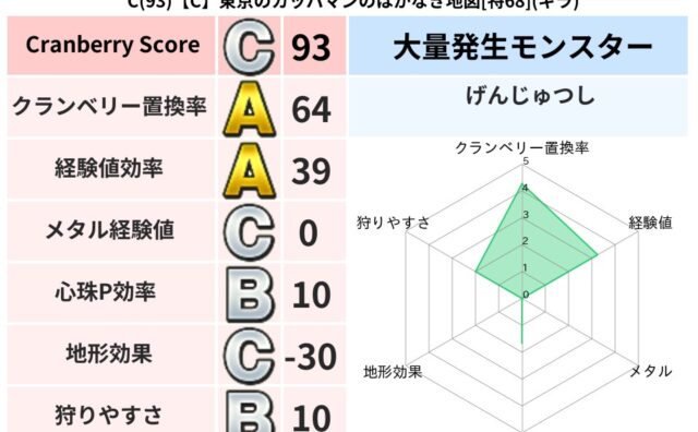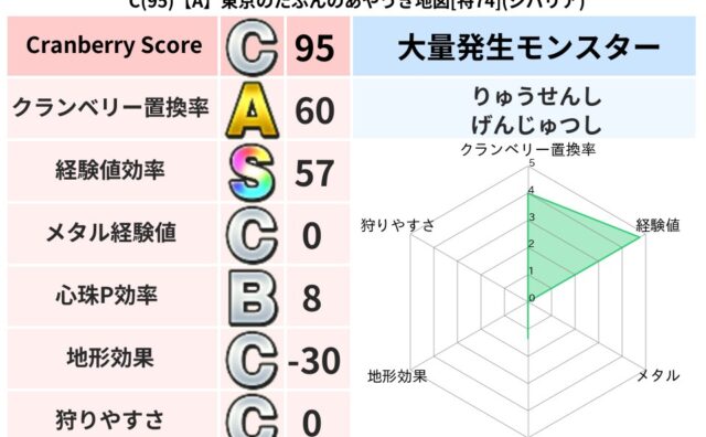 クランベリーボット判定結果の詳細クランベリースコア:95クランベリー置換率:60%大量発生モンスター:りゅうせんし,げんじゅつしジバリア超耐性(46%)こころ道 完全一致モンスターばくだん岩大神官(舞道Lv5)ストーンマンゴッドハンド(守護...